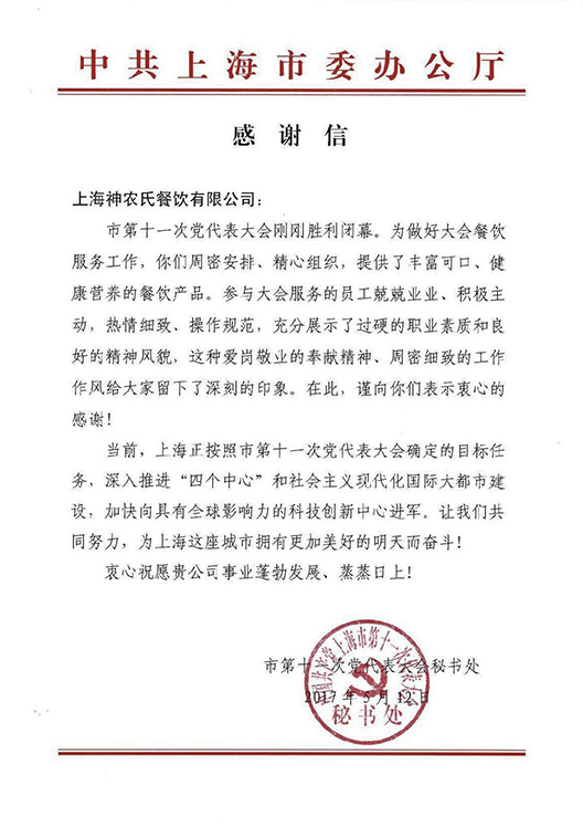 我公司在團(tuán)餐領(lǐng)域取得的成績得到了市、區(qū)政府等有關(guān)部門的認(rèn)可。經(jīng)市政府有關(guān)部門的多次考證、層層篩選,從2005年開始,我公司已成為上海市人代會(huì)和黨代會(huì)指定的餐飲服務(wù)供應(yīng)商。我們提供的餐飲服務(wù)得到了廣大參會(huì)代表的一致好評(píng)。同時(shí)我們也已參與市級(jí)各類大型活動(dòng)的餐飲供應(yīng)。